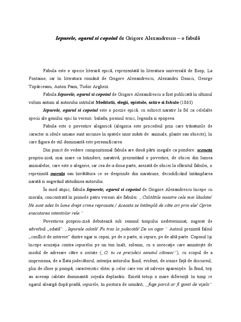 Iepurele Ogarul Si Copoiul De Grigore Alexandrescu Poezii Si Versuri