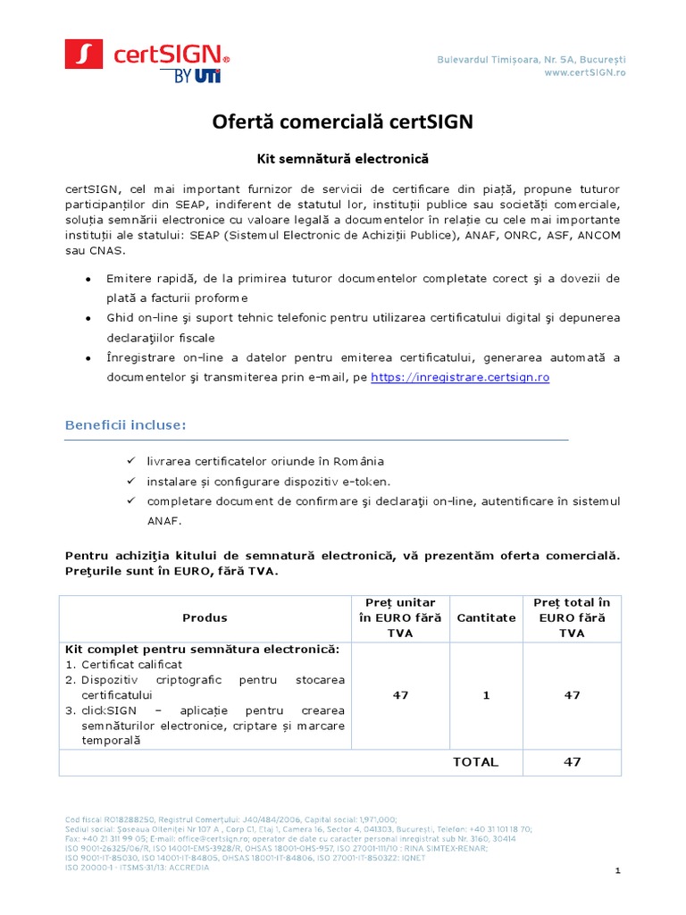 Oferta Comerciala Semnatura Electronica