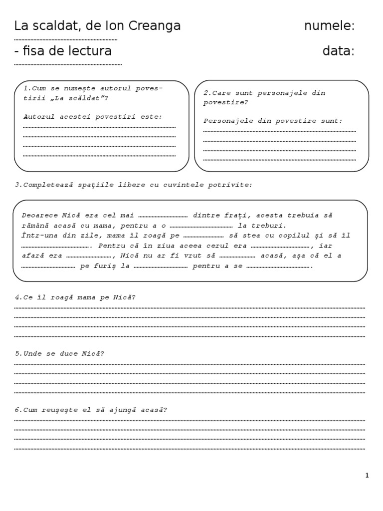 Fisă La Scaldat Dupa Ion Creanga Interactive Worksheet