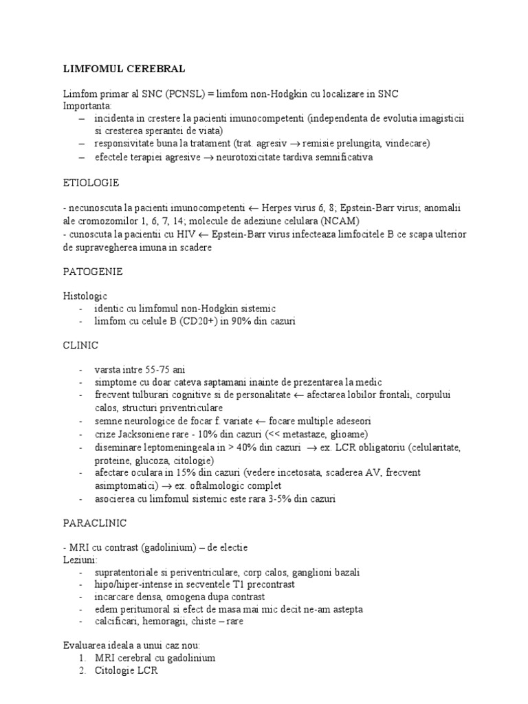Limfomul Cerebral Limfom Primar Al Snc Pcnsl Limfom